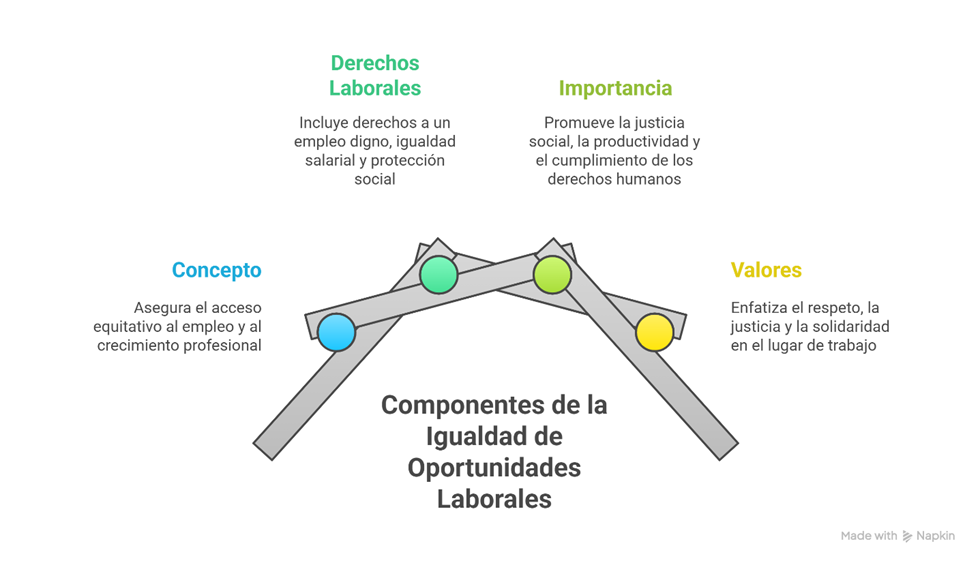 La igualdad de oportunidades laborales significa que todas las personas, sin importar su sexo, edad, origen étnico, religión, condición económica, discapacidad o cualquier otra característica, deben tener las mismas posibilidades de acceder a un empleo, recibir un salario justo y crecer profesionalmente.