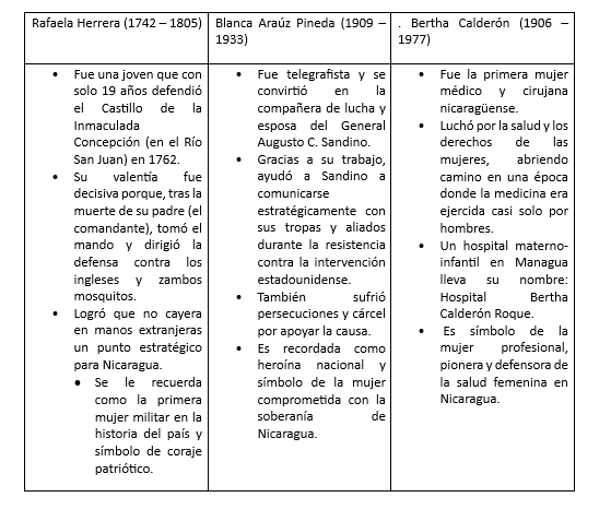 I. Cuadro comparativo de mujeres heroínas de Nicaragua.