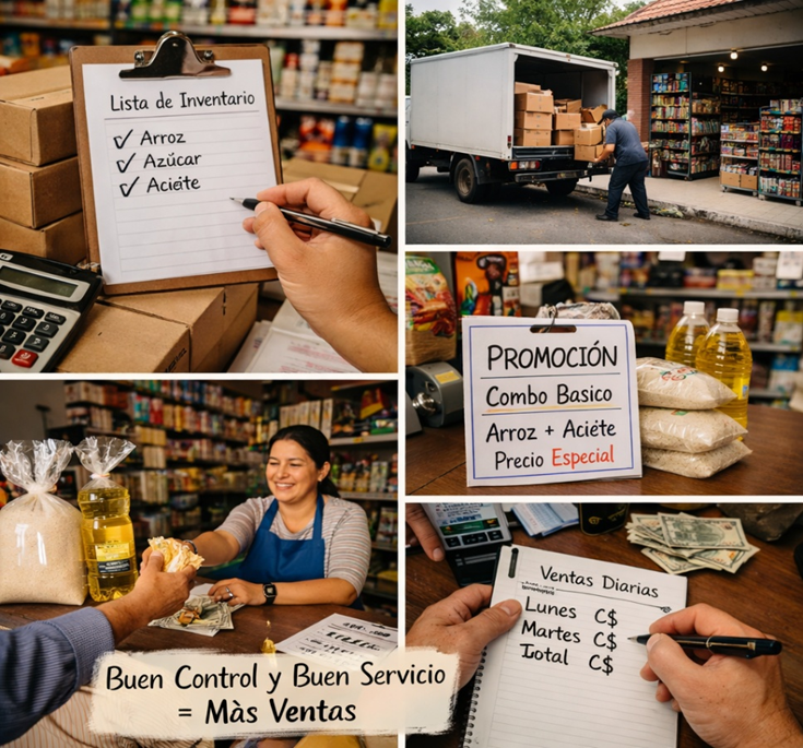 Inventario, compra de mercaderías, promociones, control de ventas, excelente atención al cliente:
