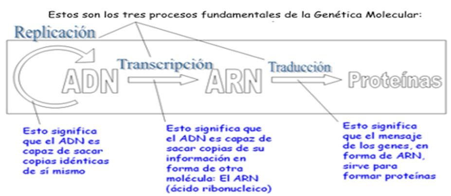 7. ¿En qué consiste el proceso de replicación, transcripción y traducción?